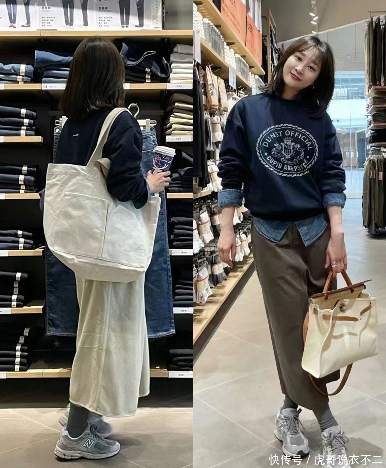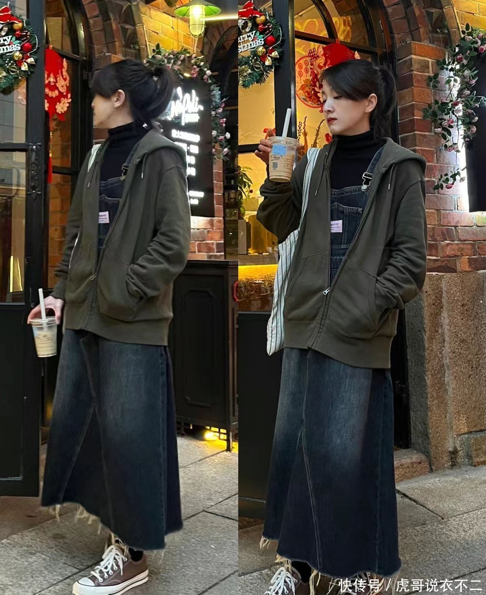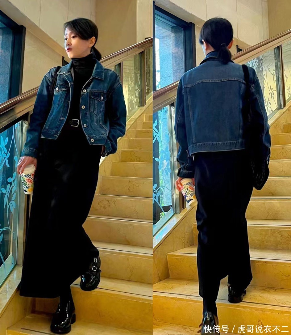 中年女人也可以直接借用“牛仔衣+半身裙”的穿法,演绎出又美又帅的一面,迅速的构造出高级有型的格调。