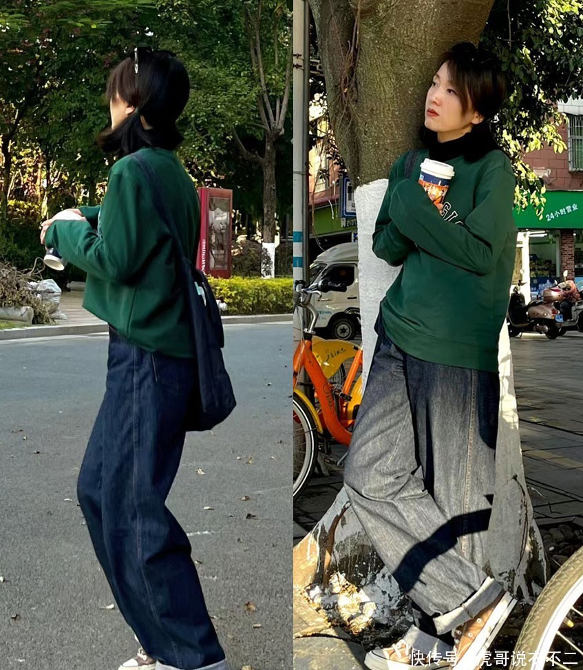毕竟普通人的穿搭风格并不需要太过潮流前卫,简约时尚才是最有利于自身气质释放的,因此不妨试着备好一些基础款单品,就比如说图中这类牛仔裤。