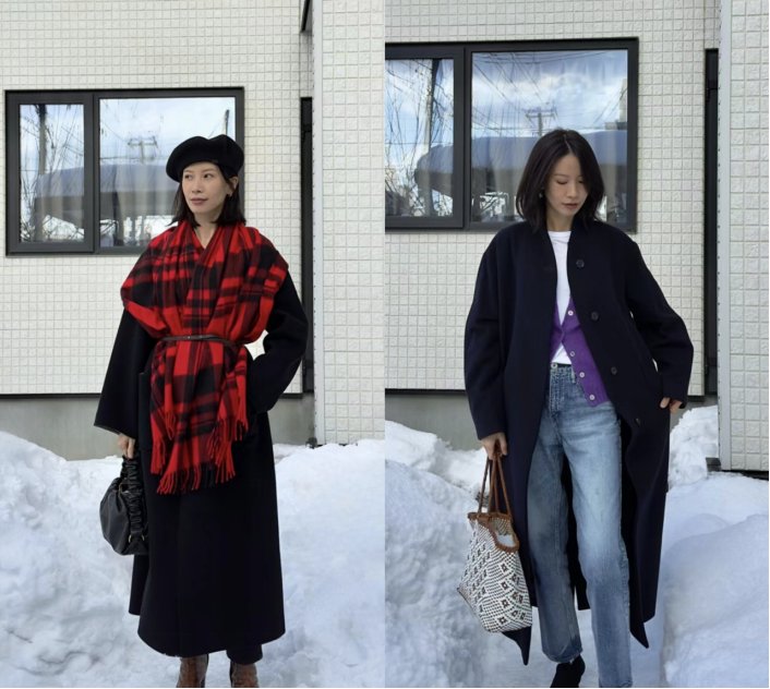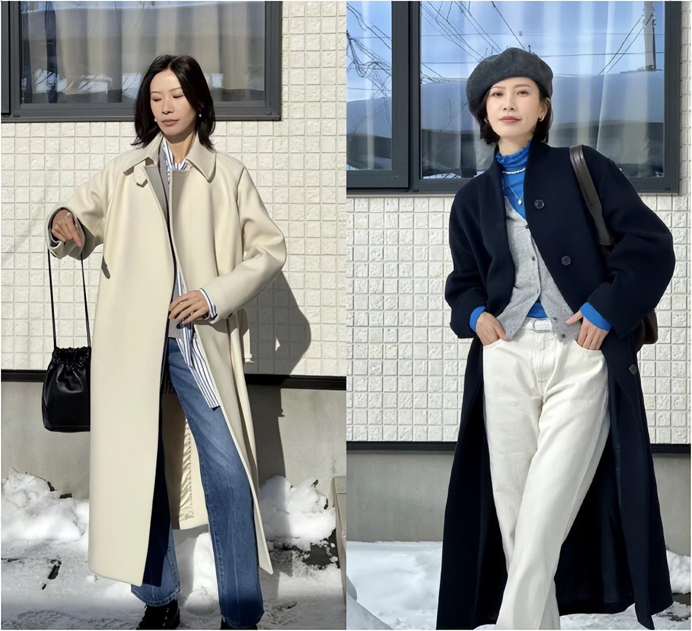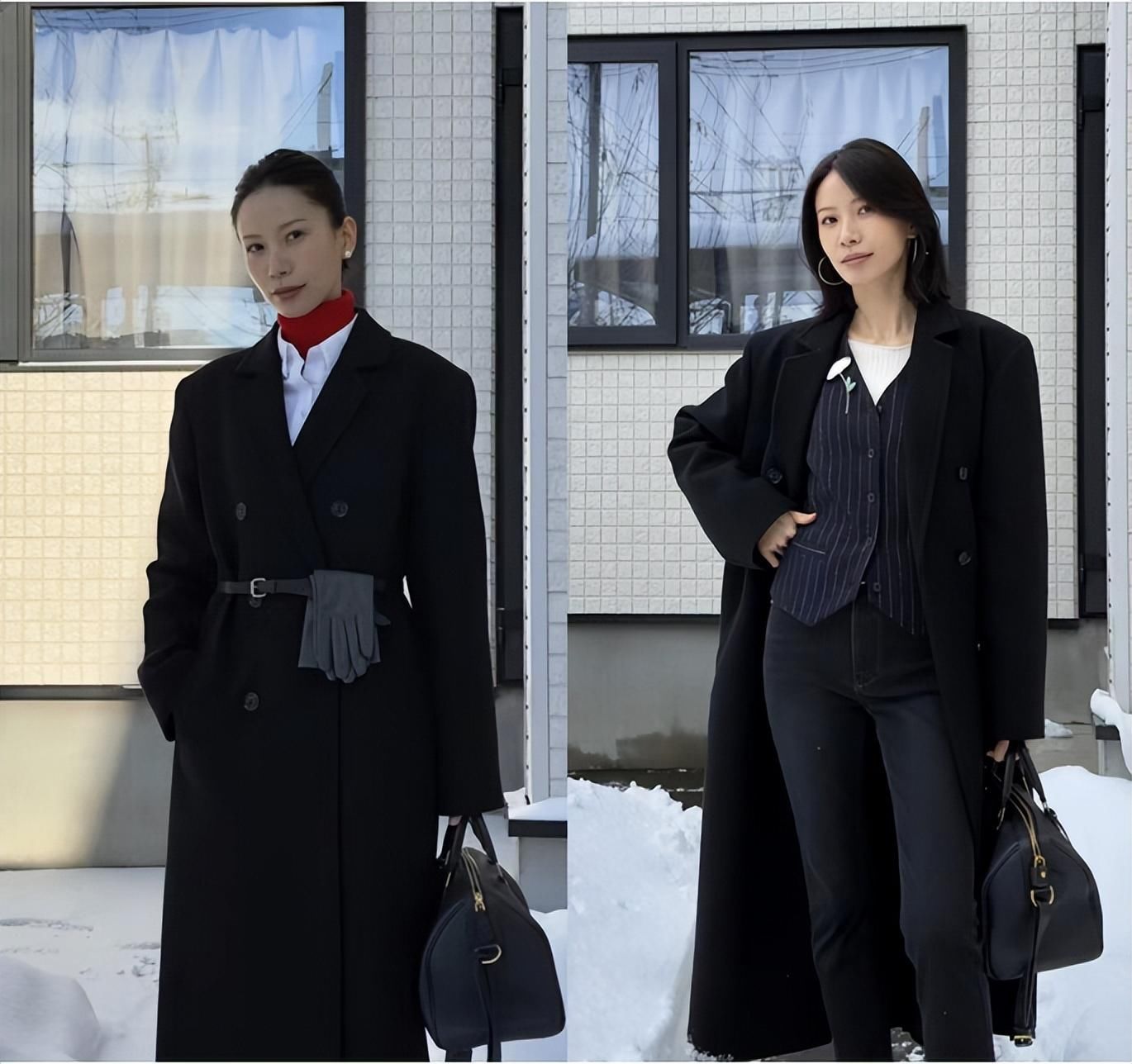 像这两件黑色长款大衣,它们都是在日常生活中可以频繁使用的佳品,就算进入到了五六十岁的阶段,穿上这类长大衣都不突兀。
