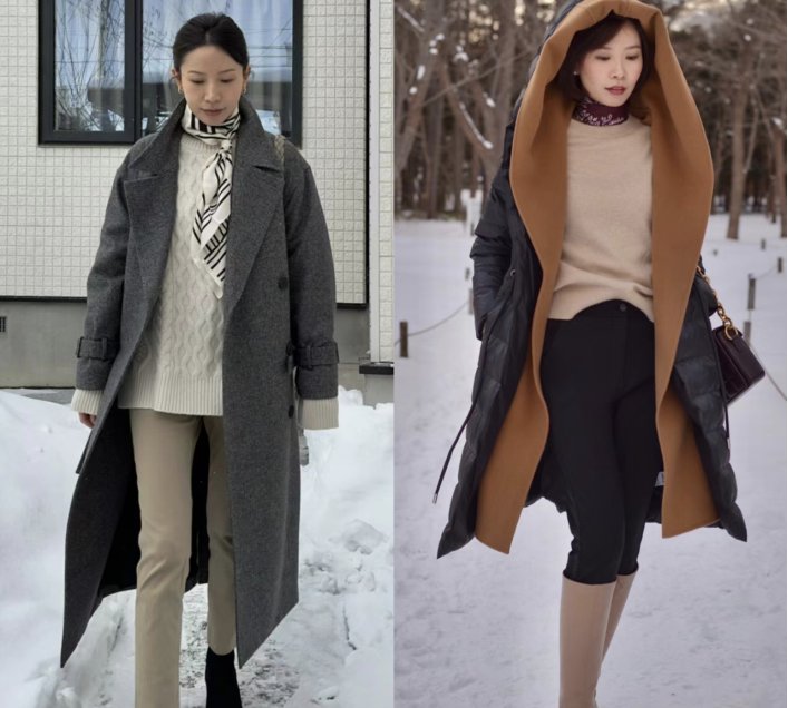 而这两套造型中,采取的外套都不是那些很难驾驭的类型,可以很好的打造出保暖的效果,适合在冬季使用,较有实用性。