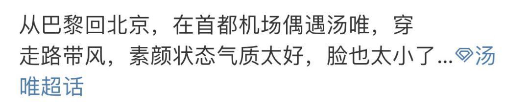 现身机场的汤唯还被网友偶遇,被确认是素颜状态,而且没戴墨镜进行遮挡,最重要的是面对路人的合影要求,汤唯本人也没有拒绝。虽然脱离了滤镜和专业摄影师,汤唯的五官略显寡淡,但是皮肤状态和个人气质依旧在线,尤其是那张精致的瓜子脸,果真是电影脸的标配。在路人的镜头中,汤唯本人少了几分大明星的凌厉感,更显舒适随性。