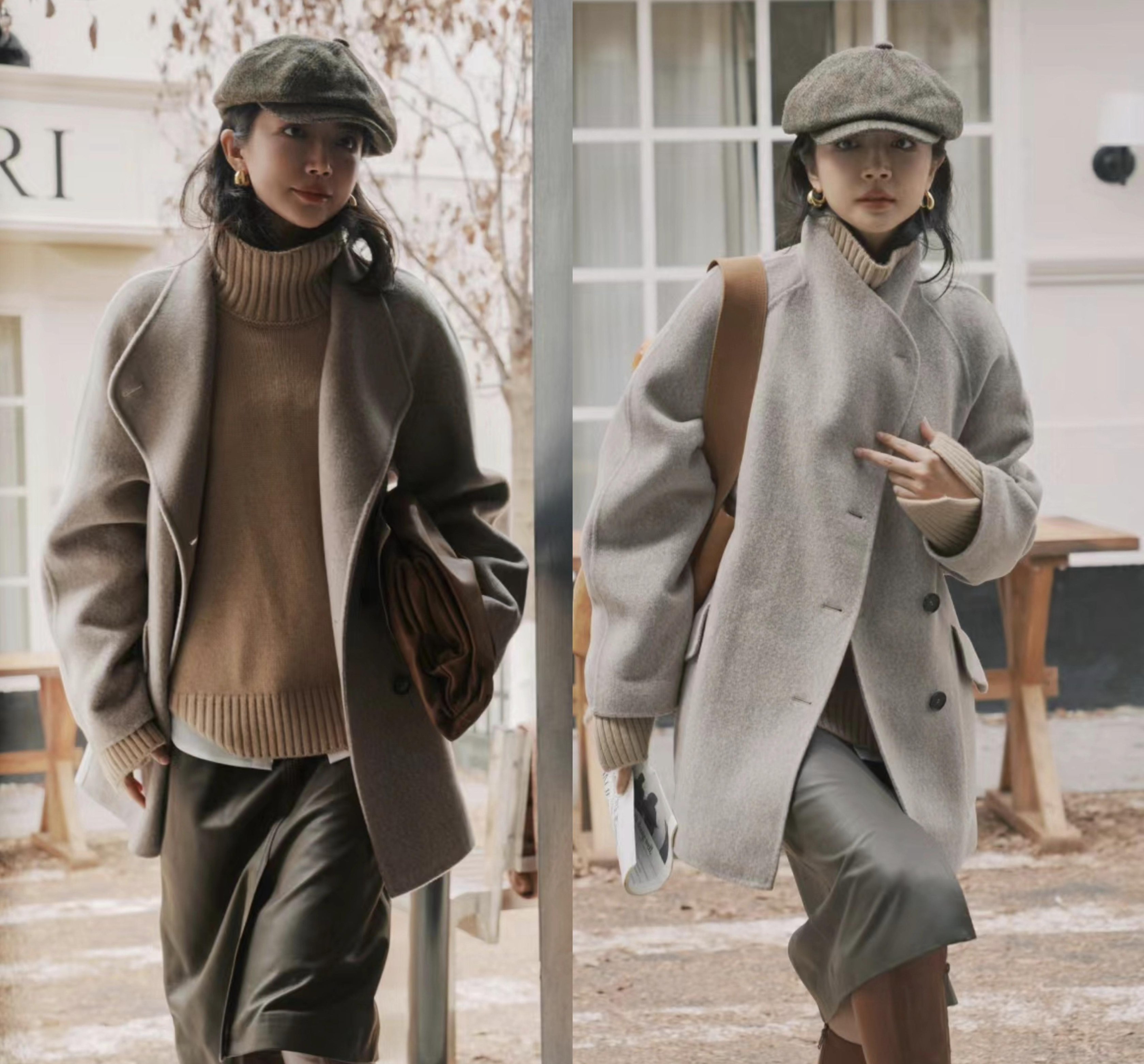 长款大衣尤其是宽松的大衣单品,很适合用来叠穿,而且叠加单品的方案各有不同,有的显得利落,有的显得温柔。