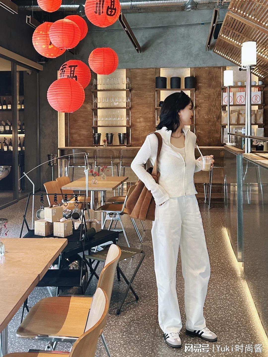 整套奶茶色系穿搭堪称显高神器。T恤选V领款式,阔腿裤可选择面料硬朗的纯棉材质,再搭配一双黑白配色的德训鞋,配色简约,细节处彰显穿搭巧思。