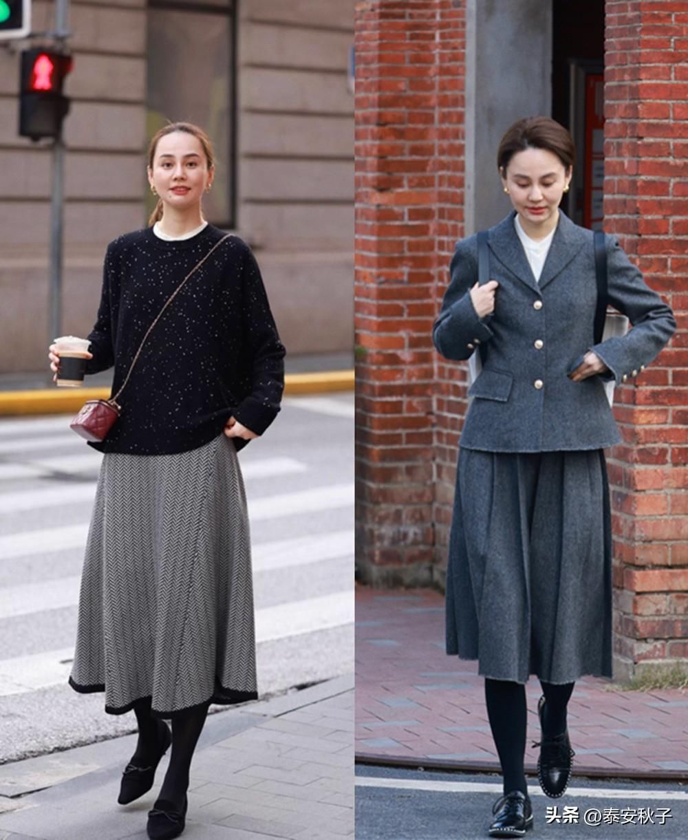不妨选条中长款式的半身裙吧。用舒适有型定纺面料,赋予裙身良好廓形。随意地配件毛衫+外套,可以无缝衔接的走到春末