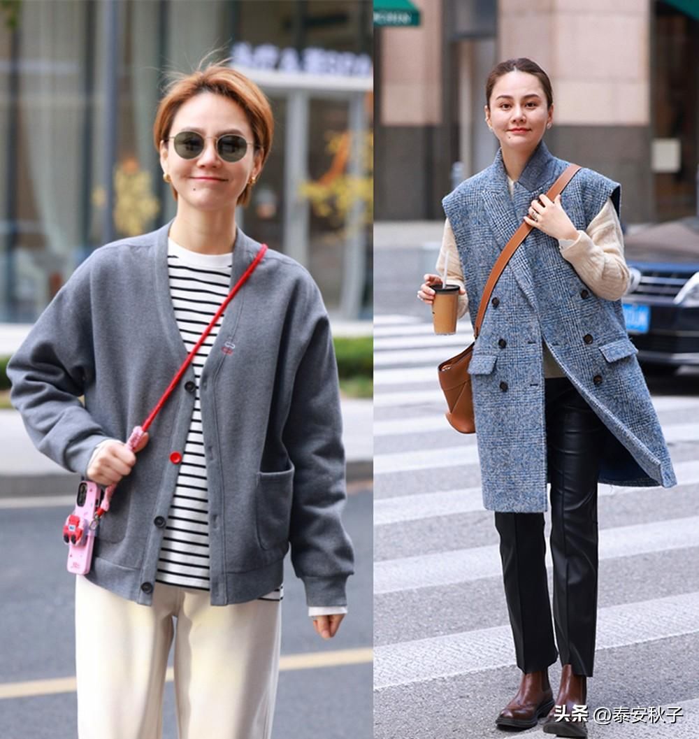 我们可以像她一样用“敞门襟”、或是加配饰的叠穿手法,合理地搭配,便可为自己打造出一个、又一个时髦洋气的造型