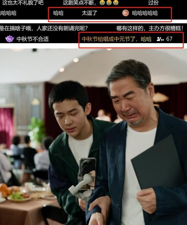 又或者是,沈卓然在中秋节上朗诵了一首对妻子思念话语的时候,因为太悲伤,被人给挤下来的画面,小编又乐了。