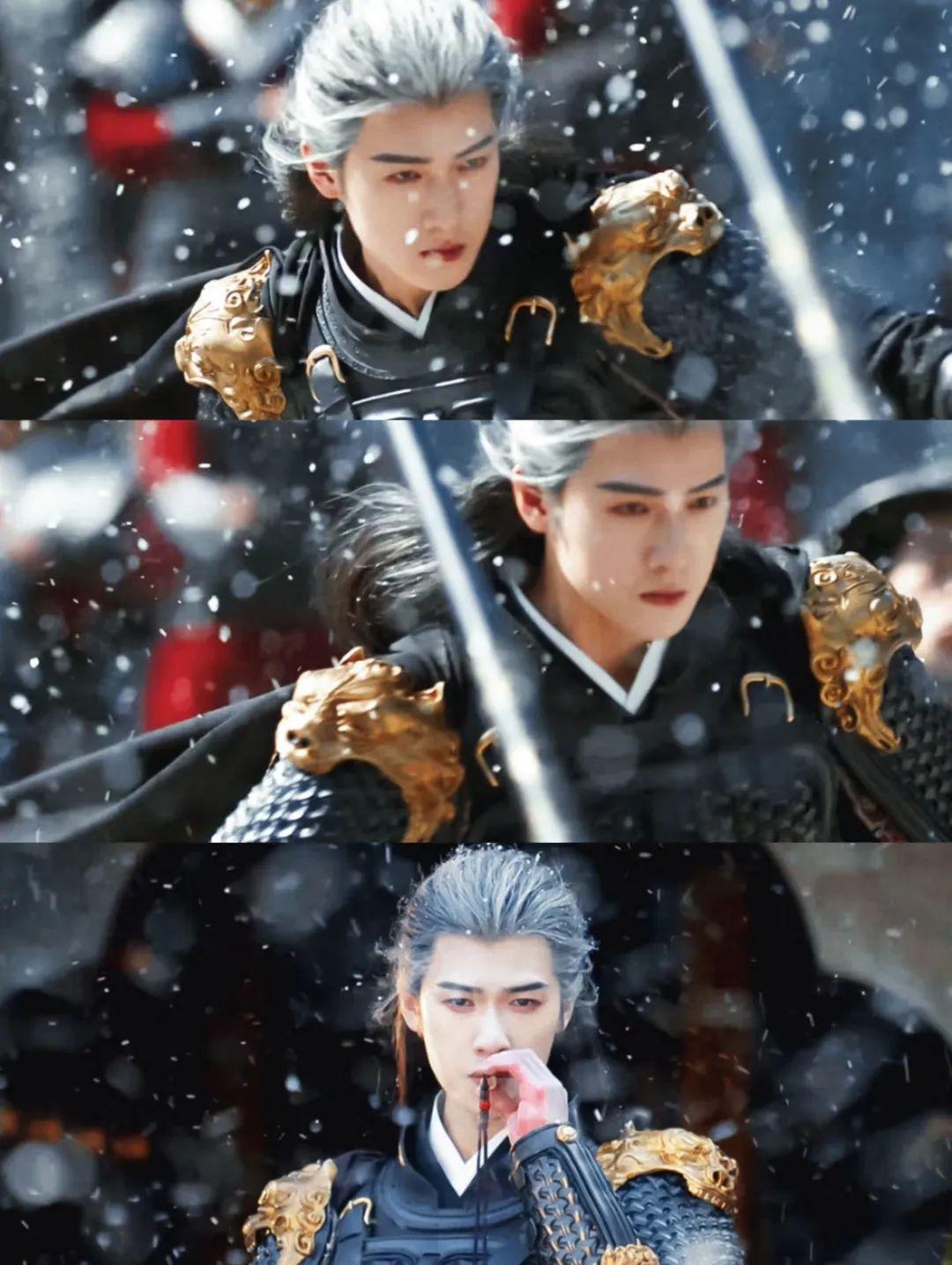 《星汉灿烂》中的凌不疑,是吴磊对鲜衣怒马小将军交出的答卷。他凭借英俊潇洒与锋芒毕露的气质,将凌不疑的果敢与坚韧表现得淋漓尽致。《长歌行》中阿诗勒隼城楼雪中献降的对峙摘面具的片段,仿佛下一秒就能听见他轻描淡写地说:“别来无恙,沈妙。”