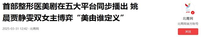 北青网:2025-03-31:首部整形医美剧在五大平台同步播出 姚晨贾静雯双女主博弈“美由谁定义”