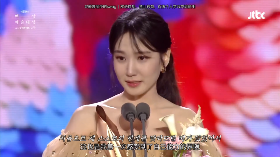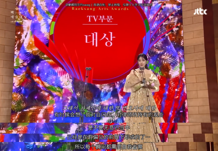她颇有深度的领奖发言,也在韩国引发不少转赞讨论。