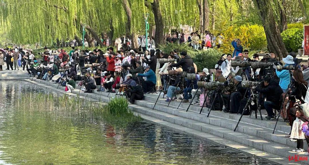事实上,玉渊潭公园一直是北京知名鸟类拍摄场所之一,从早到晚一直有众多摄影师在湖边拍摄鸟类照片。