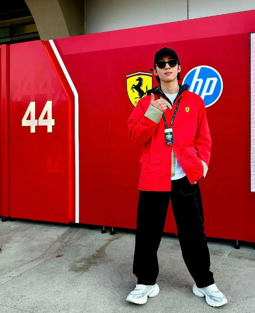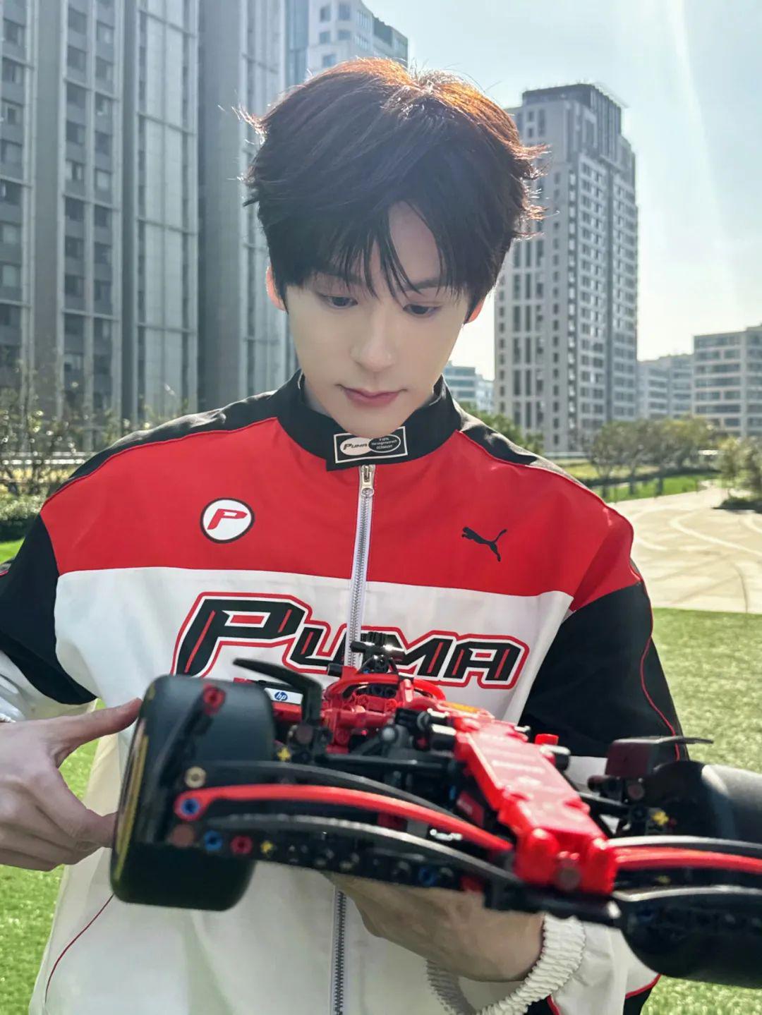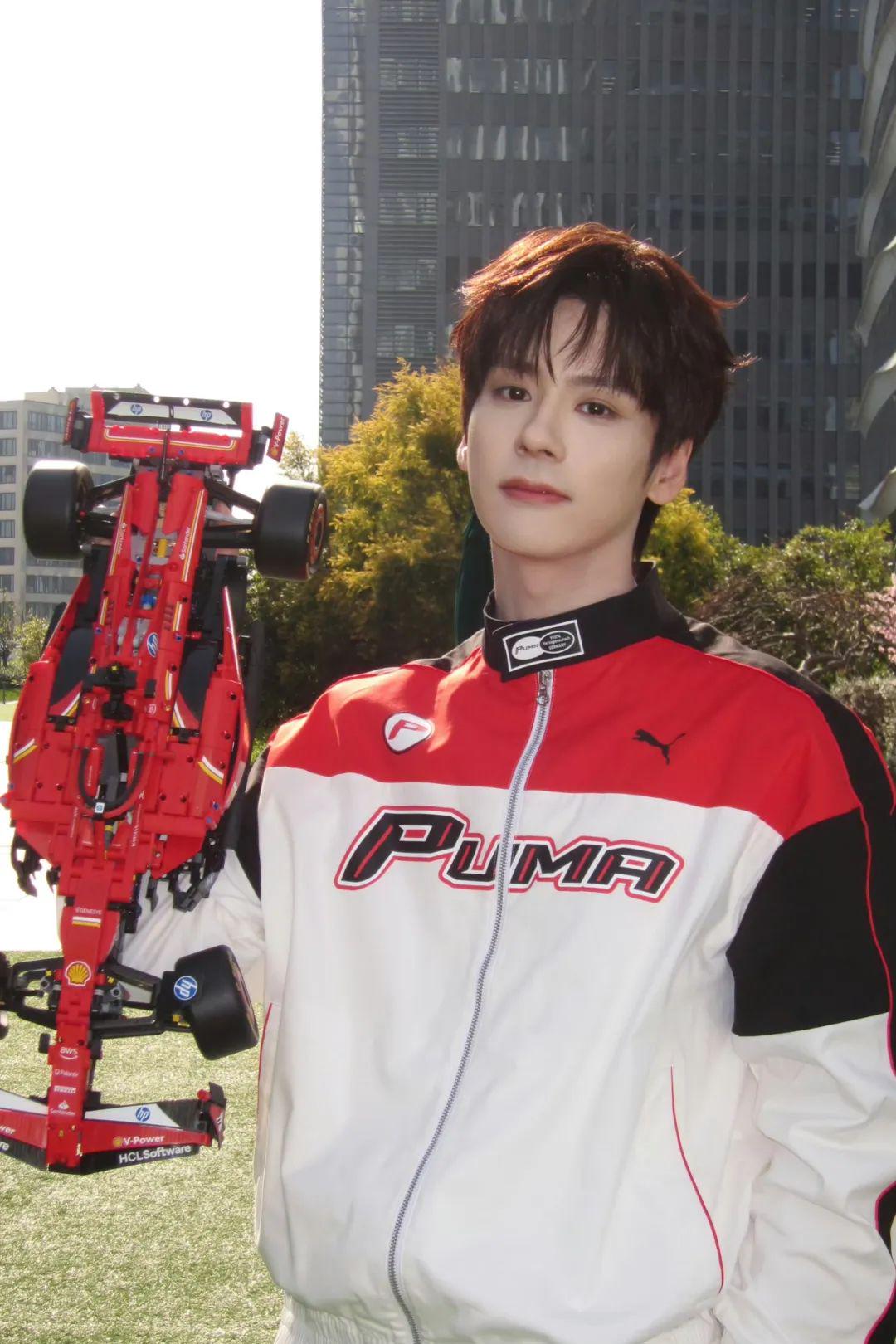 魏哲鸣身穿与 F1 官方合作品牌 puma 联名法拉利赛车系列,化身“F1赛车手”,红白黑的经典配色飞行员夹克在他身上诠释出赛车基因与潮流信仰的破圈融合,少年感和运动风完美结合。