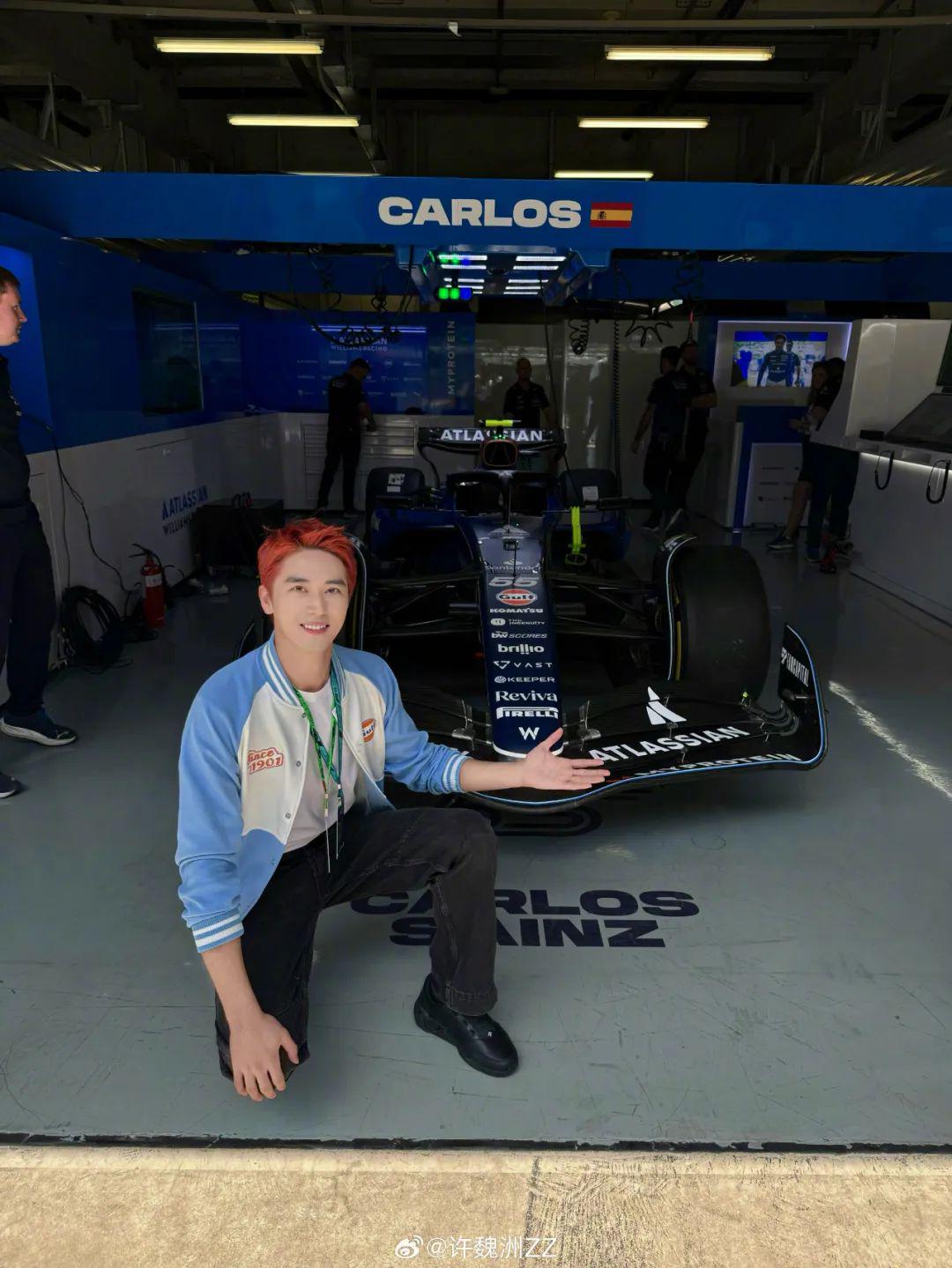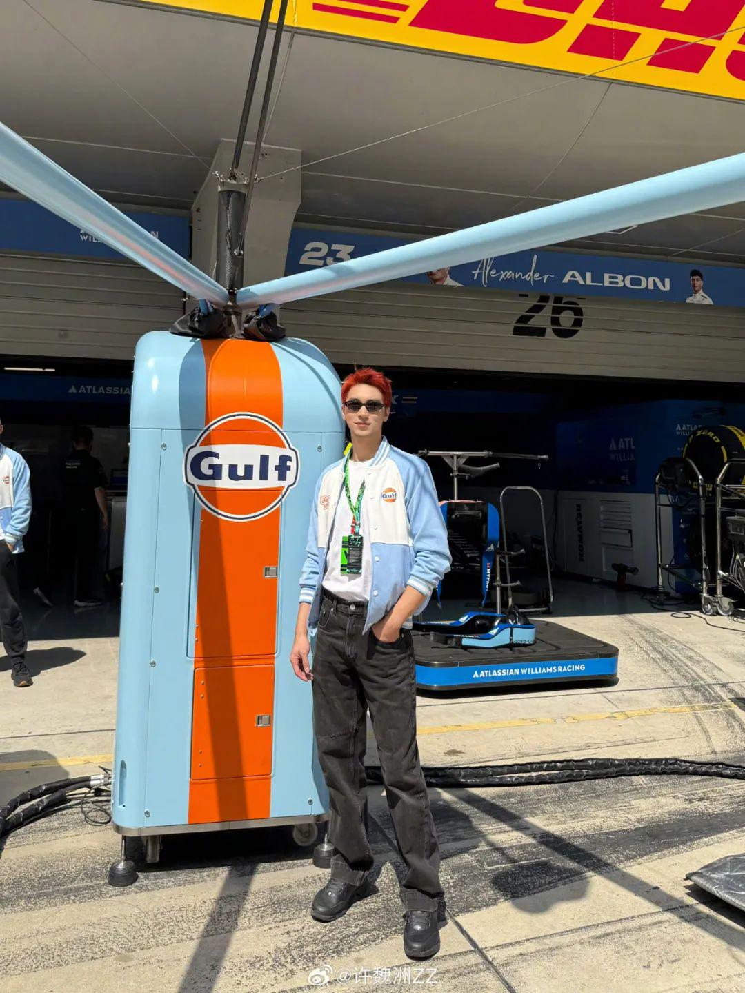 和多用印花色彩拼接的皮衣“赛车手”穿搭相比,漂移赛车手许魏洲选择了更为休闲和清爽的蓝色 Gulf 棒球服,而一头红发的“加持”更显得时髦与不羁的态度。