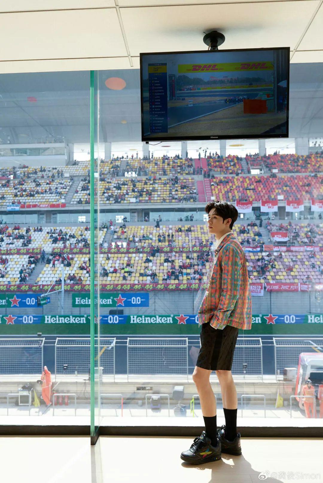龚俊作为 LVMH 和 F1 达成十年合作后第一位被邀请的内地明星,以一身靓丽出众的彩色格纹外套和黑色短裤组合亮相赛车比赛现场。在感受赛车的风驰电掣中,轻松拿捏潇洒和街头运动系男孩儿既视感。
