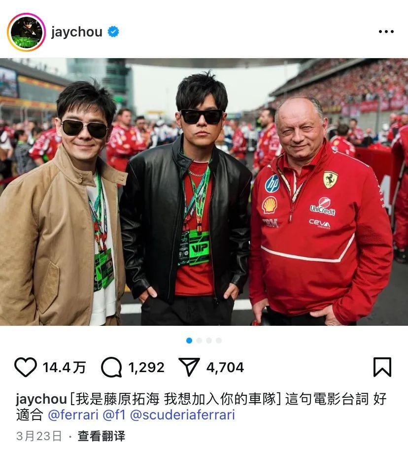 周杰伦和林志颖在上海 F1 中国大奖赛现场的梦幻联动也勾起了无数人的回忆,曾经也是一名职业赛车手的林志颖,受邀作为 F1 中国大奖赛颁奖嘉宾。