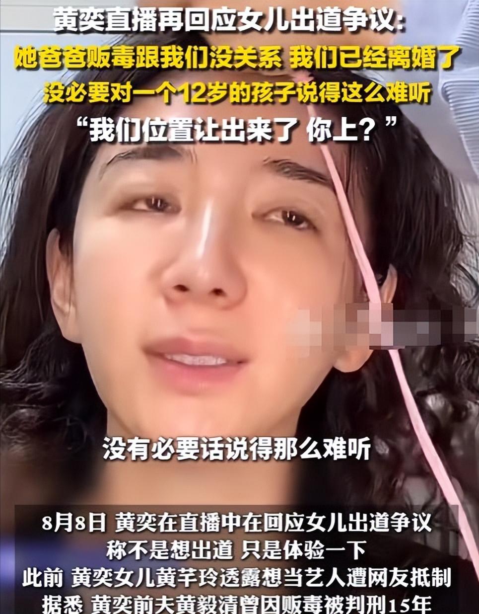 本以为黄奕女儿出道这件事,已经落下帷幕,但没想到过了两天,黄奕就在直播间里再一次回应了这件事。