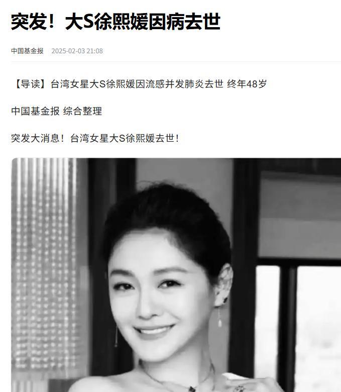 中国基金报:(突发!大S徐熙媛因病去世2025.02.03)