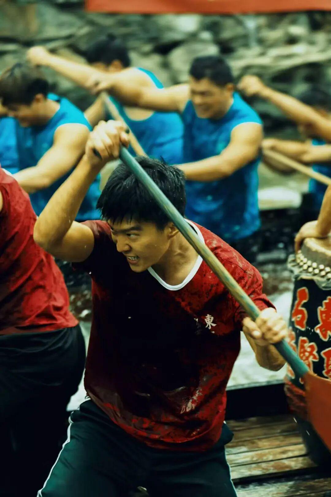 东南沿海的龙舟赛以激烈热血闻名,必须拍出令人血脉喷张的力与速。和他们同船拍戏的都是专业队员,为了这段高潮戏,黄渤和范丞丞提前来到佛山和队员们一起训练。那段时间,饰演狗达发小的演员付航每天都能在酒店碰到健身的范丞丞,无论收工多晚。