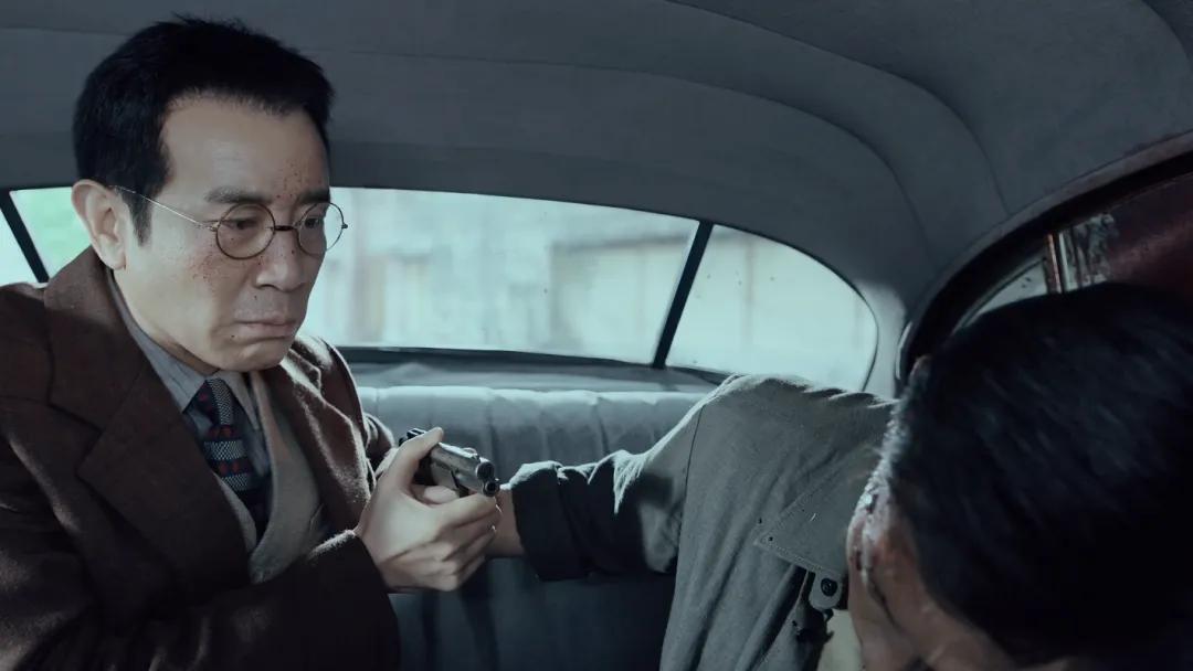 特务向车里开枪,他第一反应是护住吴石,而当车被截停,他眼里情绪变得复杂而浓厚,飞速说出情报,没给吴石任何阻拦的机会,就举枪自尽。