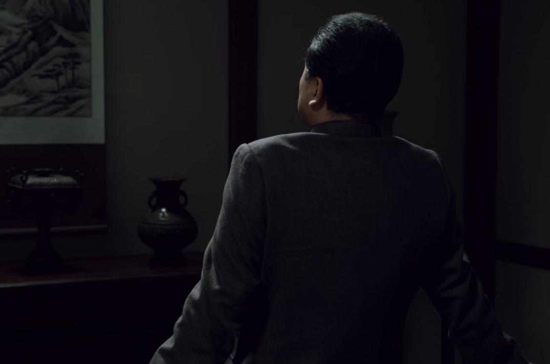 虽然只是背影,观众却能透过张晞临的身体姿态,感受到毛人凤对吴石无处不在的监控和审视。