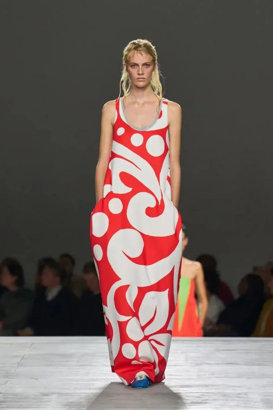 配饰与细节进一步强调“海滩的日常感”:珠宝宛若拾贝般自然簇拥,平底运动鞋与宽松条纹针织传递轻松氛围,柔软大容量包袋呼应自在旅程。Dries Van Noten 再次以诗意的方式将自然能量与城市节奏交织,勾勒出属于夏日的自由乐章。