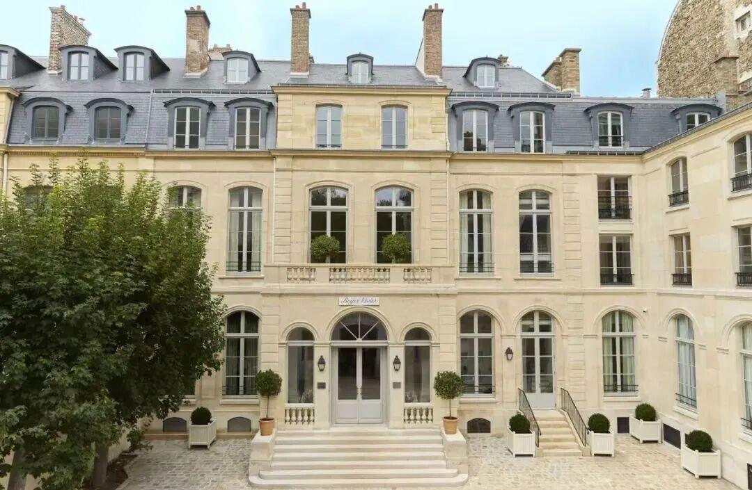 府邸由皇家建筑师Jacques Gilet de la Fontaine于1729年建造,历经数百年风华变迁,现承载品牌的工坊、沙龙与档案馆。宏伟主梯与秘密花园构成品牌叙事的起点,映射法式生活艺术。内部空间由多间主题沙龙组成:「传承沙龙」由Inès de La Fressange策展,陈列1950至1990年代标志性设计;「维维亚沙龙」以艺术家具与珍藏名作对话时代;创意总监Gherardo Felloni的工作室则展现当代巴黎气质与创作灵感。