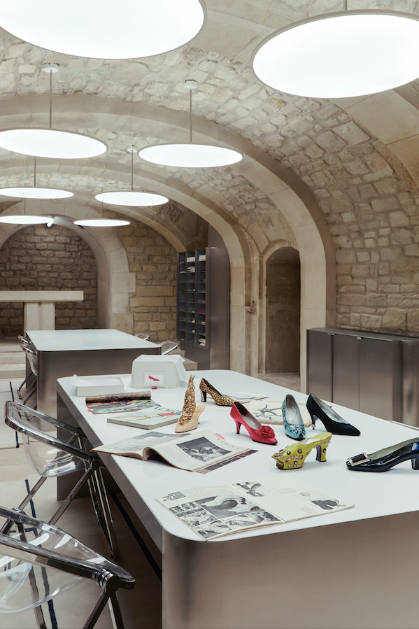 首次对外开放的「档案馆」藏有逾千件珍品,包括为伊丽莎白二世加冕典礼设计的鞋履、Dior合作凉鞋与因凯瑟琳·德纳芙而不朽的Belle Vivier。为庆祝总部启幕,品牌同步推出Belle Vivier 60周年纪念系列,以多元材质焕新经典,续写优雅传奇。