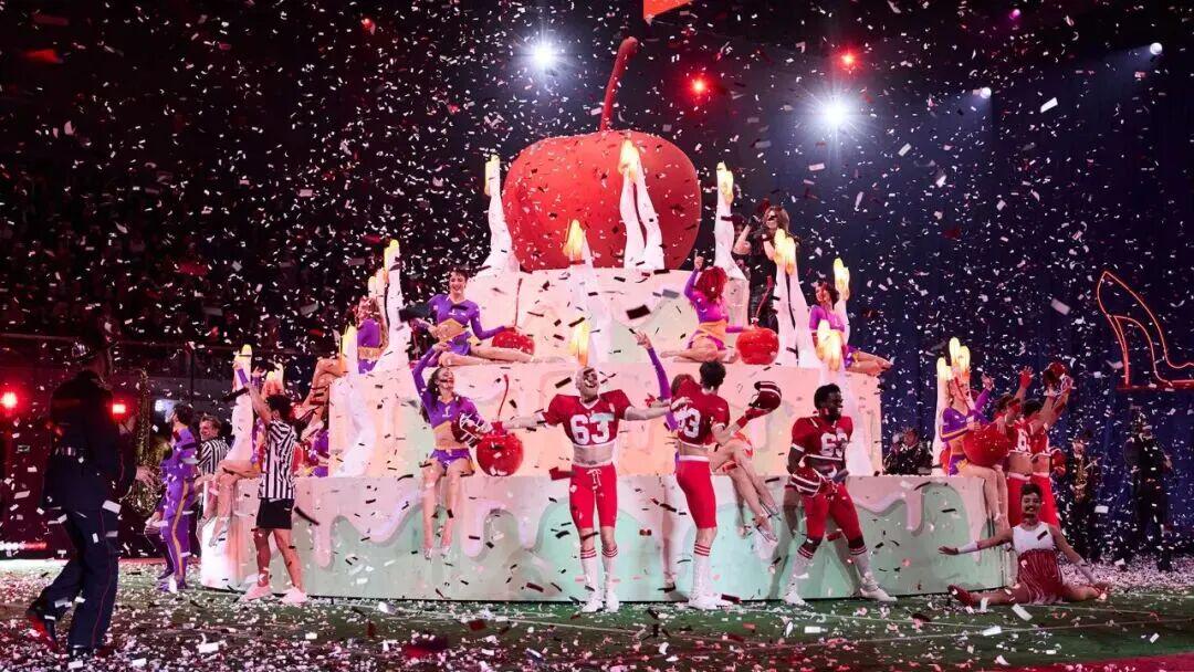 灵感源自美国小镇返校节的青春记忆,现场化身为充满张力的梦幻舞台。五幕演出层层递进:从巴黎消防员乐队的行进表演,到啦啦队与舞者的热血竞技,再到终章庆典的澎湃盛景,尽展节日的欢腾与胜利的喜悦。法国超模推着割草机悠然登场,拉开奇幻序幕;Louboutin 钟爱的海马吉祥物俏皮亮相,法式优雅与美式活力在音乐与舞动中交织,诠释自由与浪漫的交融。