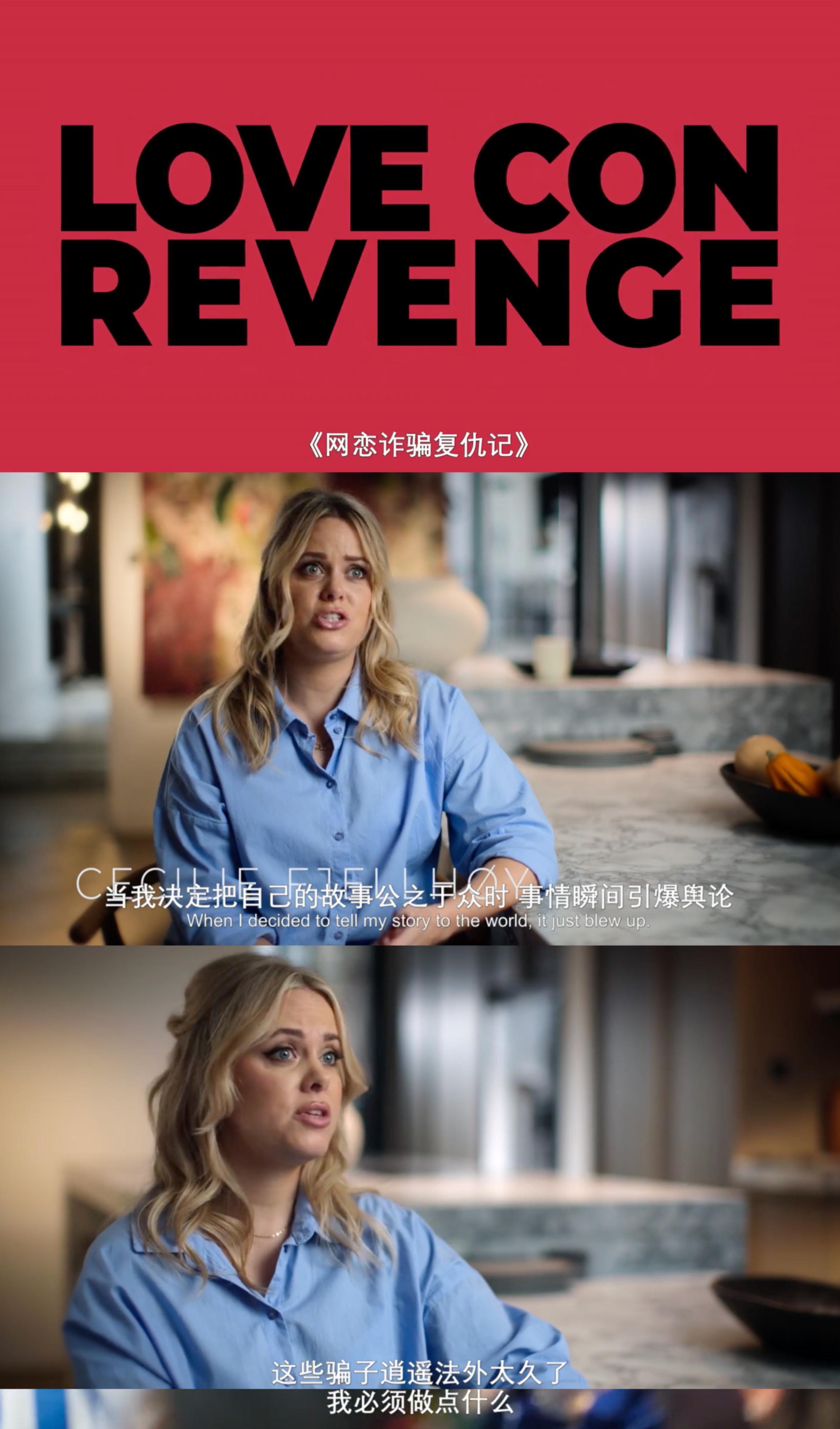 纪录片《网络诈骗复仇记》讲述的就是一个遭遇过杀猪盘,身心遭受重创,还被骗走大量积蓄背负债务的塞西莉·弗杰赫伊,决定复仇的真实事件。塞西莉携手私人调查员布丽安·约瑟夫,通过揭露、曝光情感骗子的真实面目,帮助深陷情感骗局中无法自拔的人们重拾生活信念,并警惕更多女性免受她那样的伤害。
