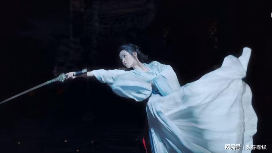 这组镜头很唯美又刚柔并济,动作设计既有真实的武术套路,又通过虚拟化动作,如云手、撩剑,增强了艺术性‌,又兼具力量与美感‌。