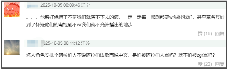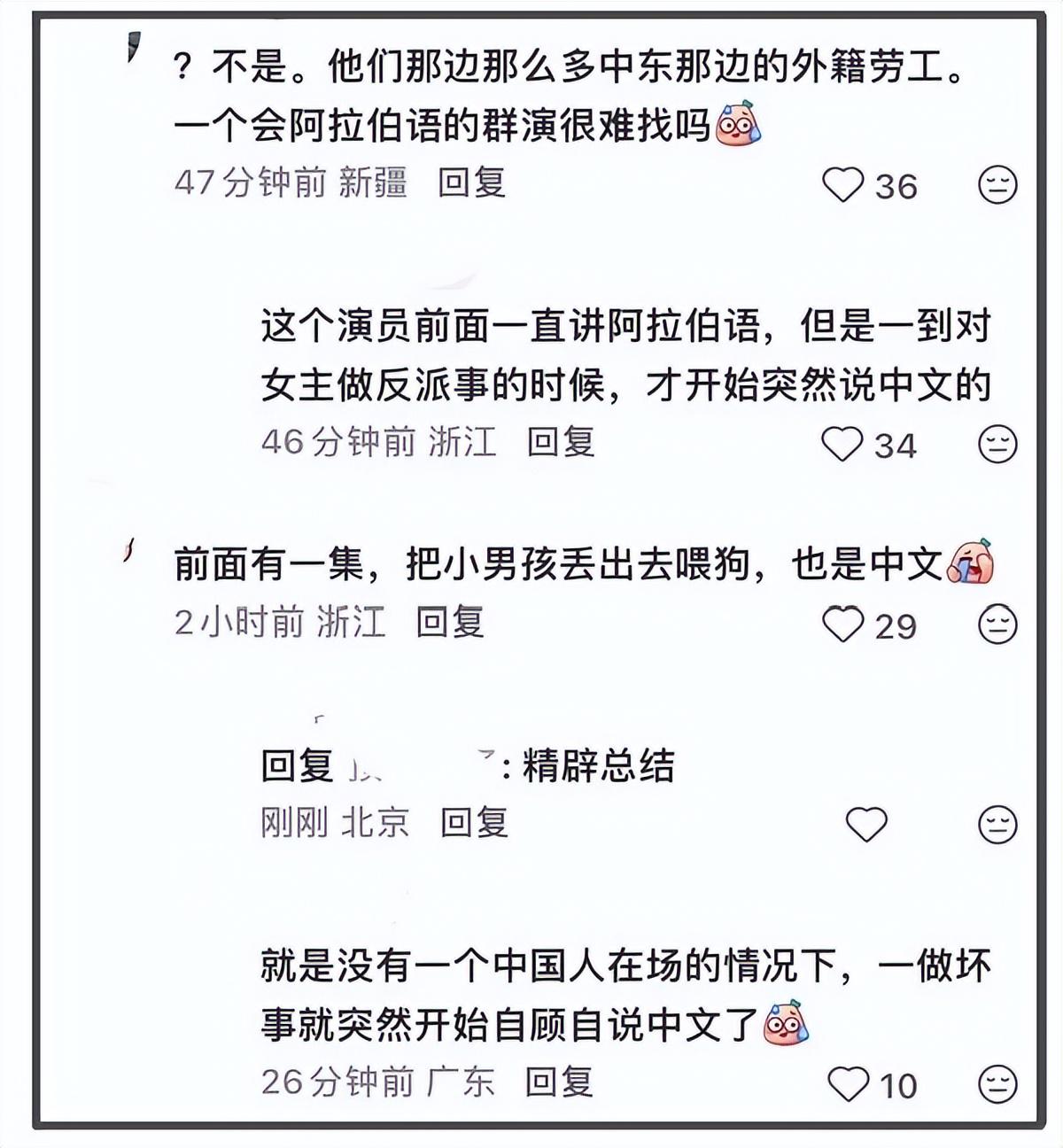 据悉,《许愿吧精灵》是外网网飞独播剧集,没有在中国平台播出,但其在中国的营销不亚于同步播出的中剧,许多网友因为推流的原因被吸引观看,结果发现剧中出现了大量的辱华情节,而且极其突兀。该剧主要语言是韩语和阿拉伯语,但剧中的反派阿拉伯人只要一干坏事就突然说中文,非常刻意且不怀好意。