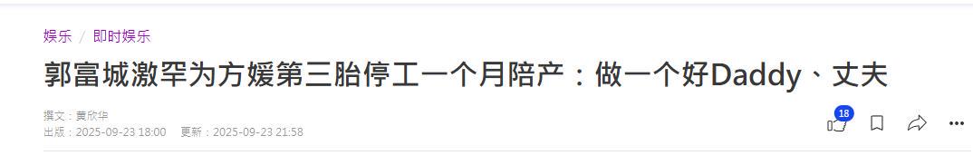 紧接着港媒又爆料称方媛三胎生了,60岁的郭富城三度当爸了。