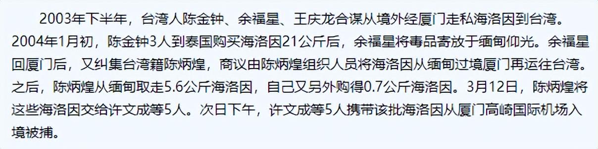 2006年11月,一名叫余福星的男子因在厦门贩卖毒品被处以死刑。