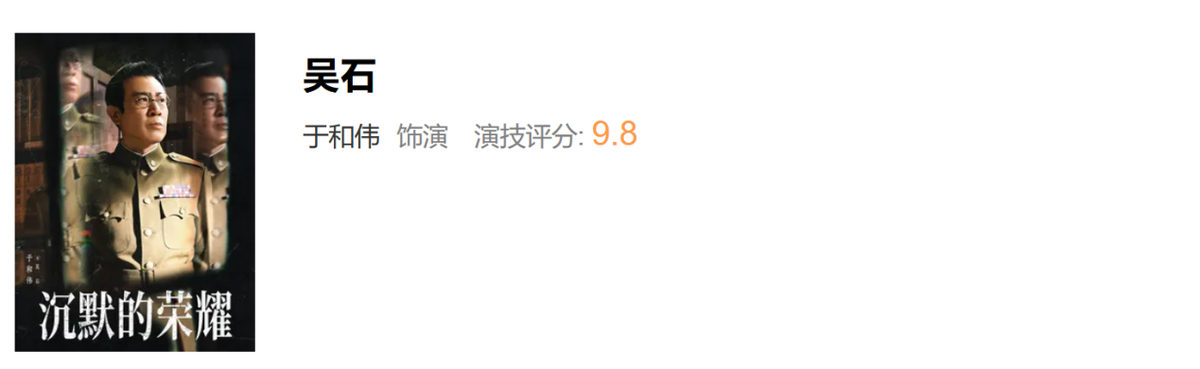作为白玉兰视后,吴越的演技不用多说,作为戏份没那么多的二番女主,评分9.8也算是谍战题材中不可多得的。