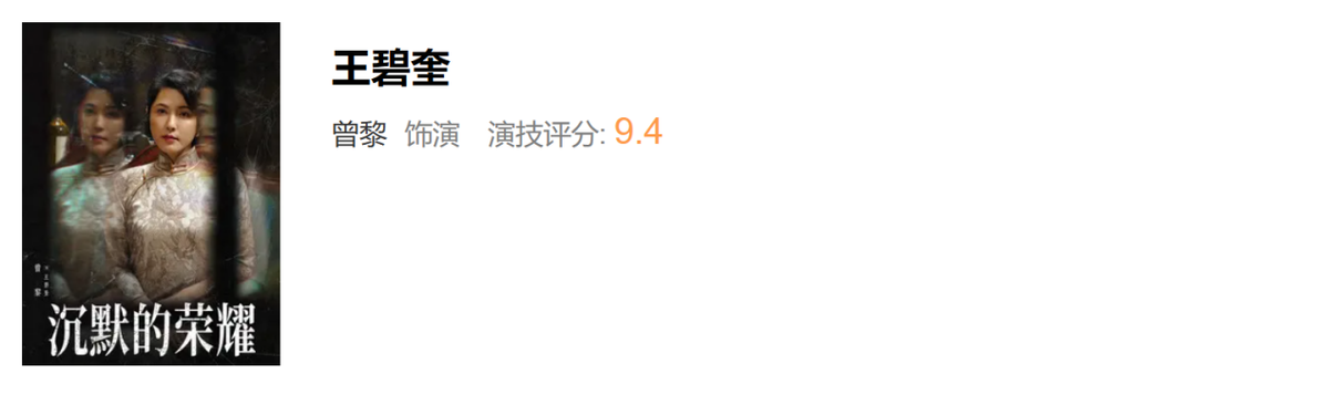 9.4的评分看起来好像不低,可作为镜头极多的女二,和吴越绝对是没法比的。