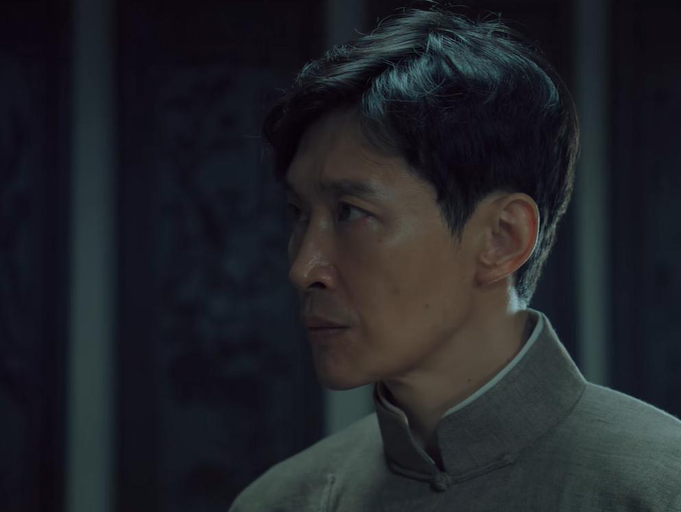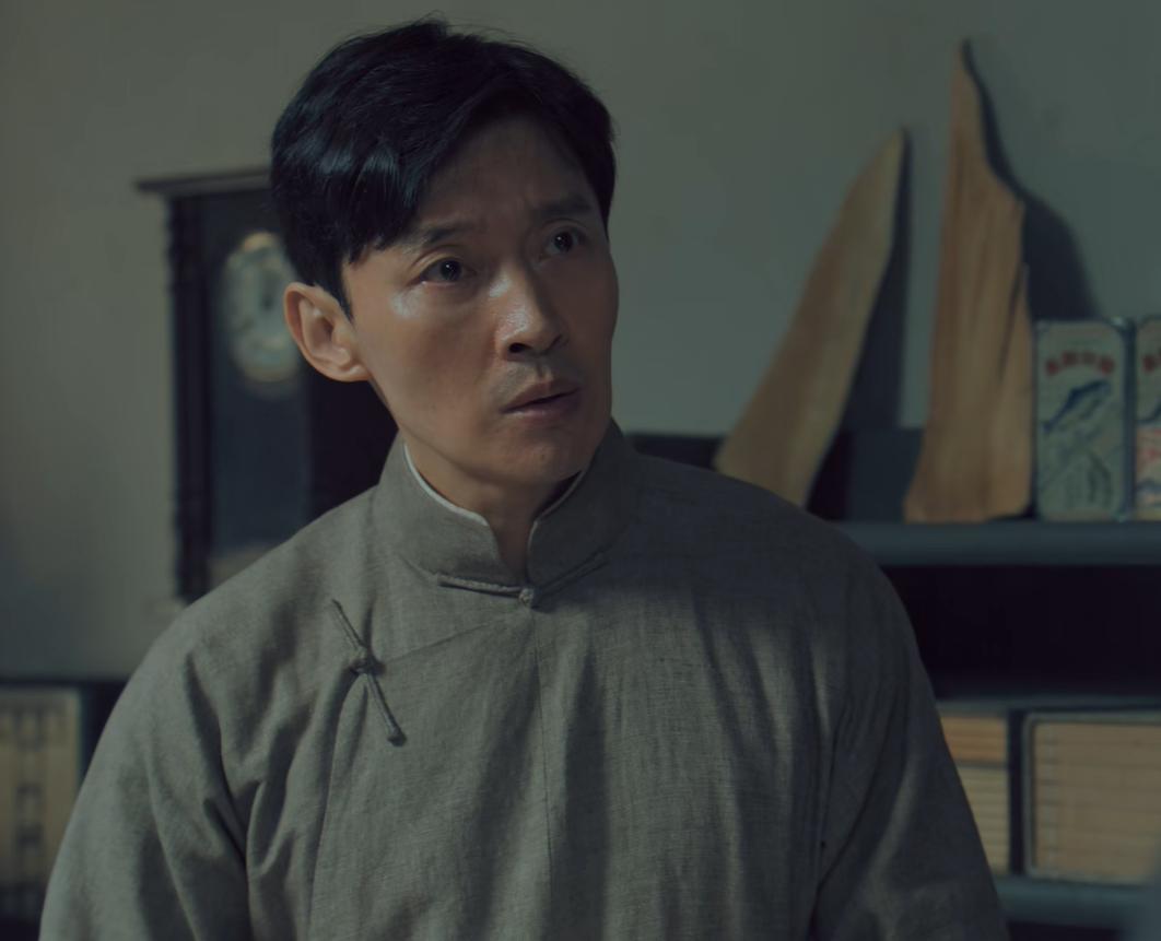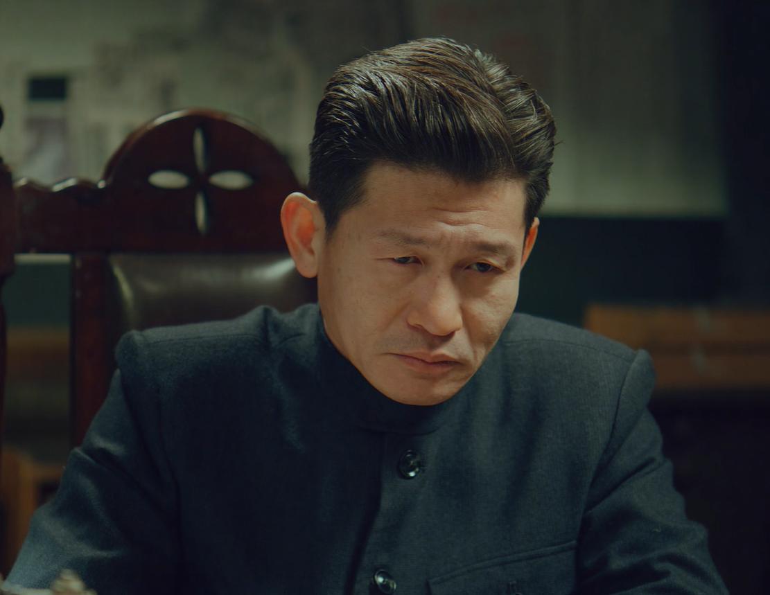 他通过翻账本节奏、对话停顿等生活化细节,强化了角色作为海货店老板的职业特征;面对陌生人时的眼神扫视、手指微动,精准传递出地下工作者的警觉;而在听到曾用日本名时的愣神、恍惚与警觉,全程无台词却层次分明。