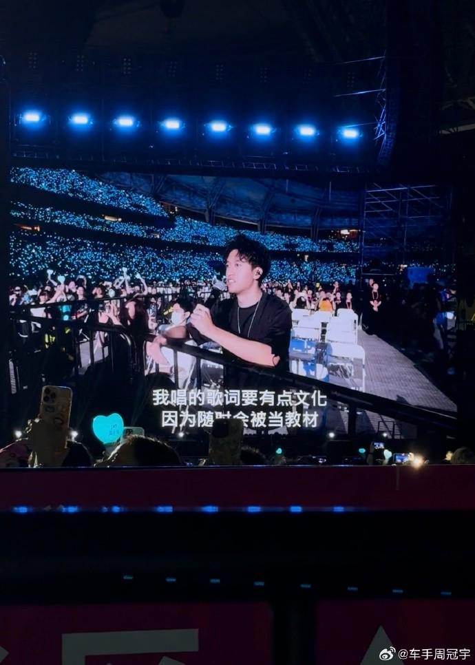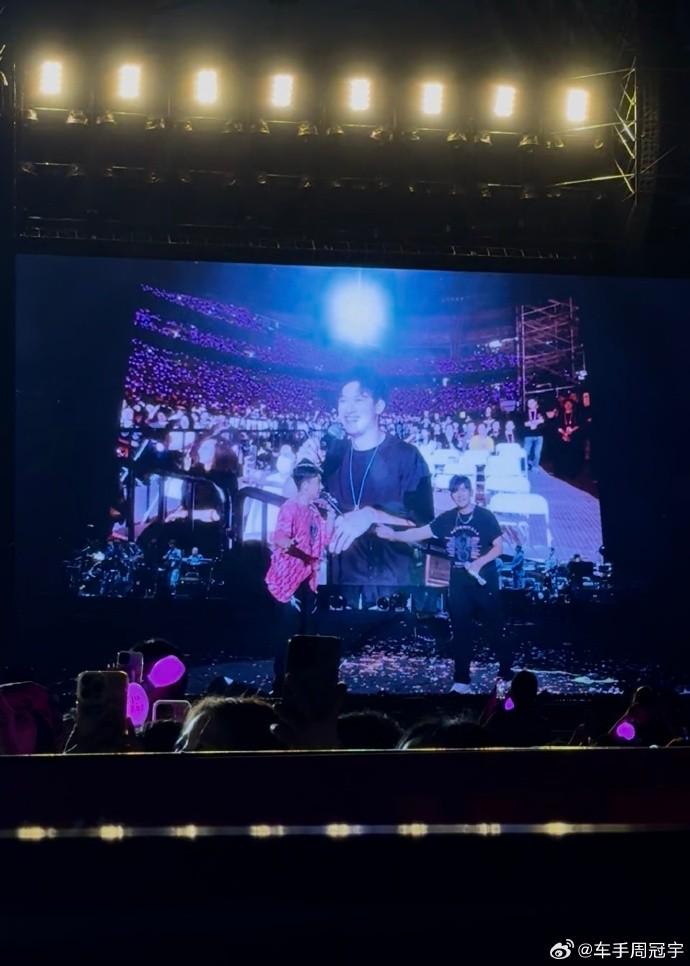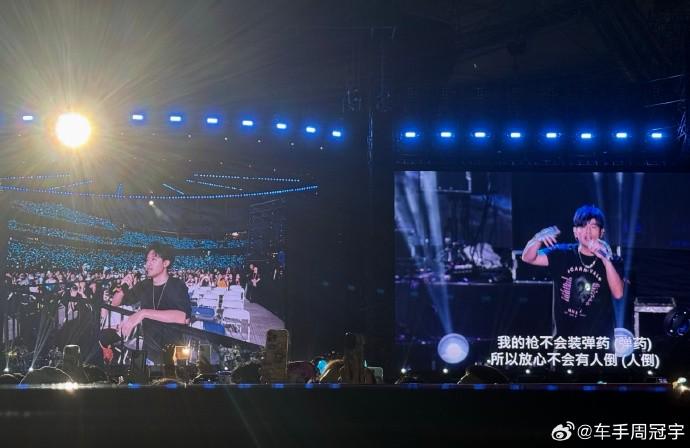 10月9日,周冠宇更新社媒写道:太太太紧张了!和杰伦哥在演唱会合唱了!(我的耳麦为什么没声音啊啊啊)