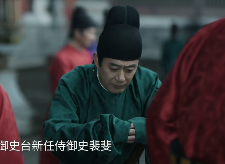 裴斐出场时卑躬屈膝、低眉顺眼,刘钧演出了没有高门显贵倚仗的模样。