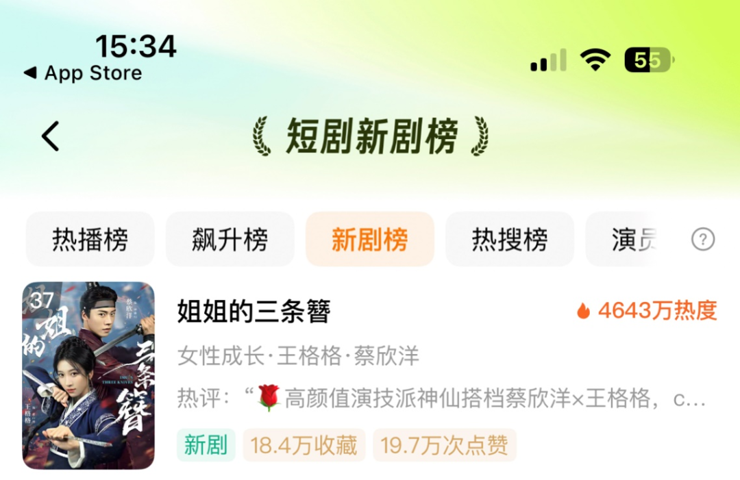 精品微短剧《姐姐的三条簪》上线首日,即登上抖音娱乐热榜。上线短短一日,红果热度值已达到4643万,收藏量超越17万,在热剧排行榜上奋力与一众爽剧一争高下。该剧以女主角蓝白梨成长为核心,讲述明代沿海倭乱的历史背景下,蓝白梨头戴三条银簪护身、保家、卫国的故事。蓝白梨从“自保求生”到“舍命抗争”,再到“带领族人保家卫国”的故事,展现了女性从个体觉醒到群体觉醒的过程。该剧传达出“愿女子的手既能温柔拈花,也能利落执剑”的价值观引发无数观众热议。。