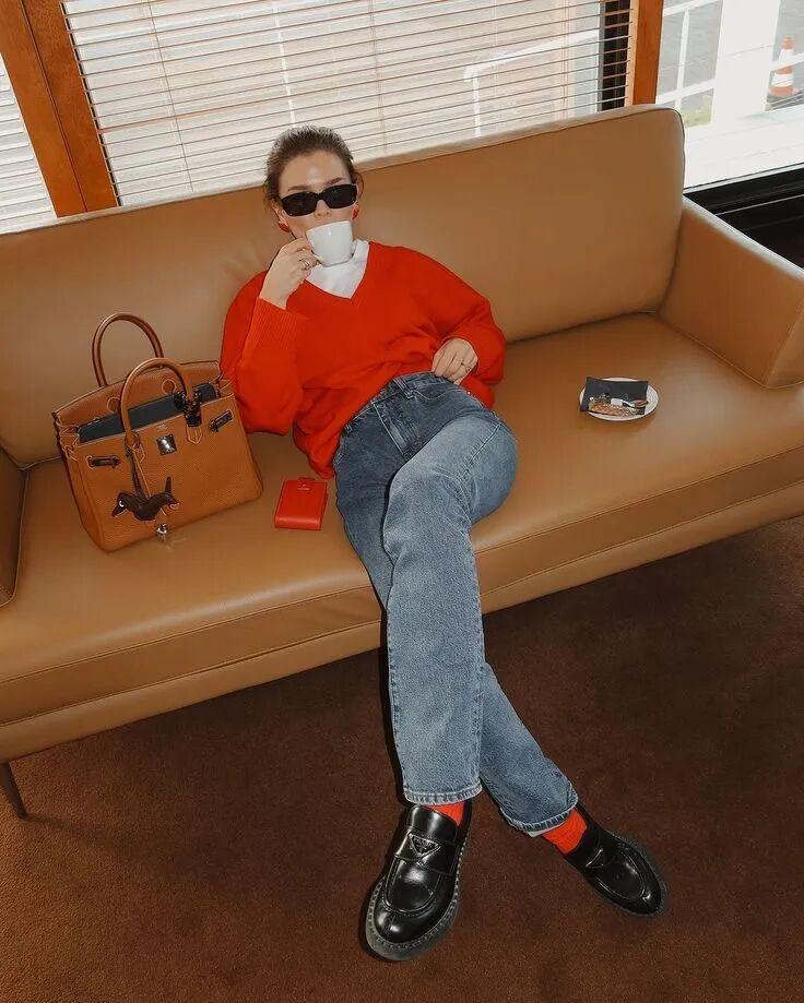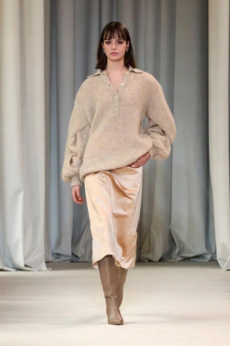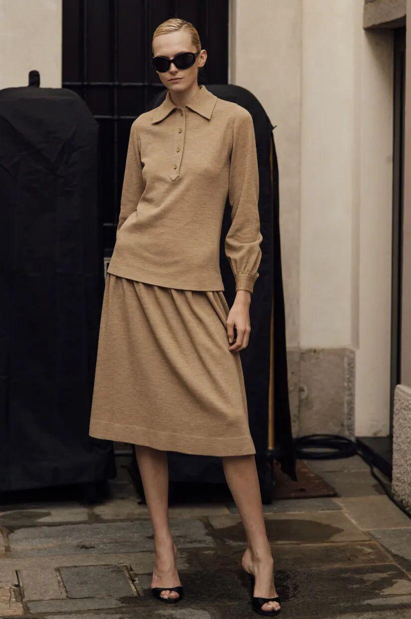 而驼色与焦糖色则是秋天最合宜的延伸。它们在光线下泛出细微的暖意,与毛衣的质地相得益彰,低调、柔和、耐看。