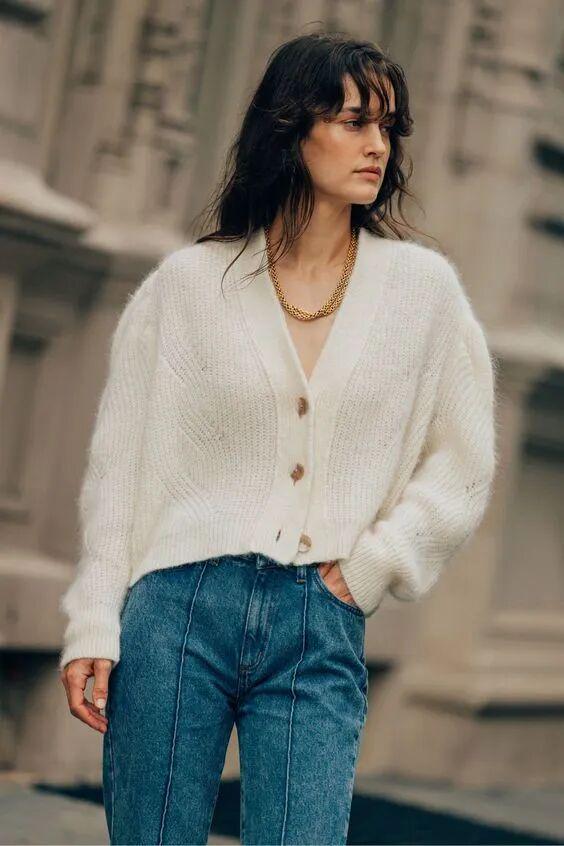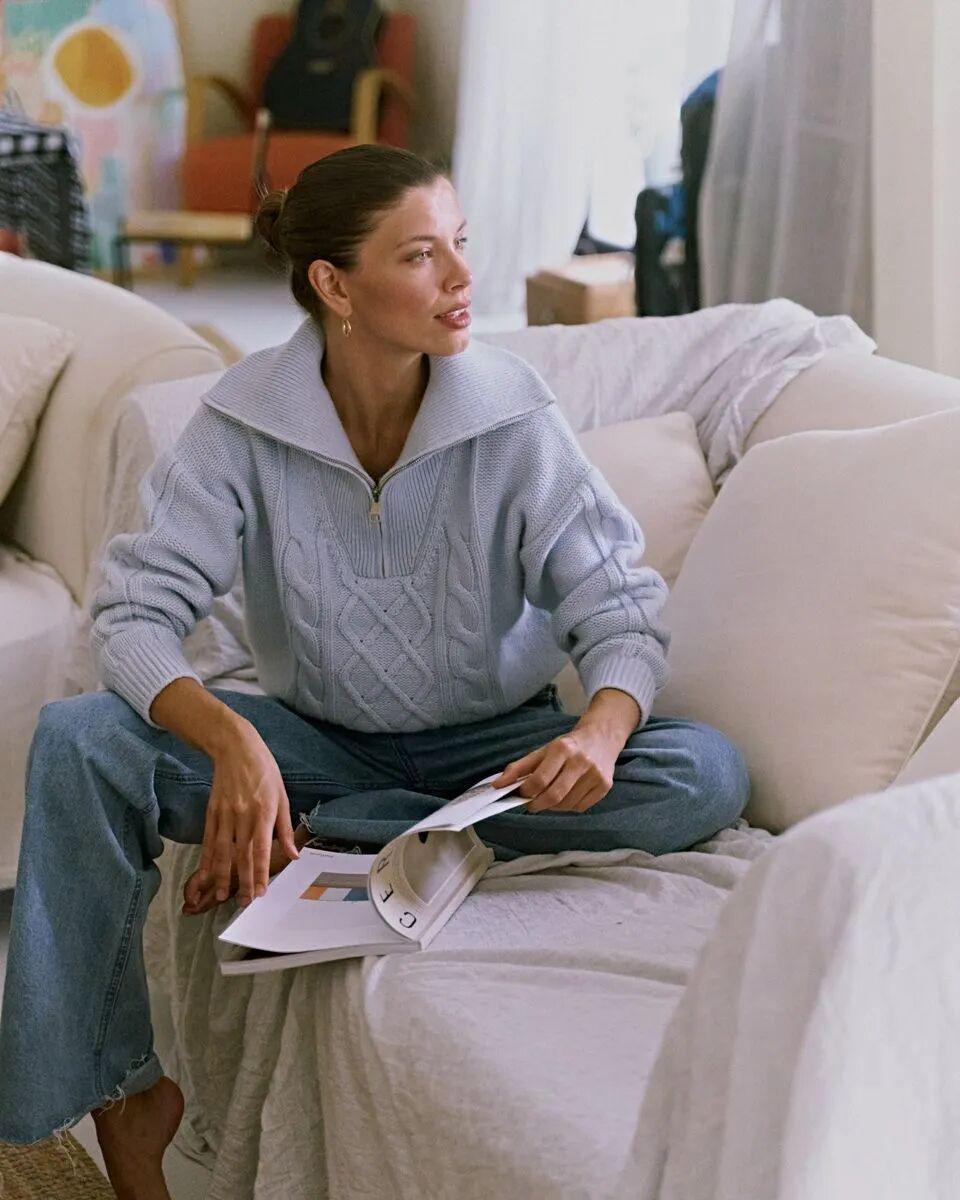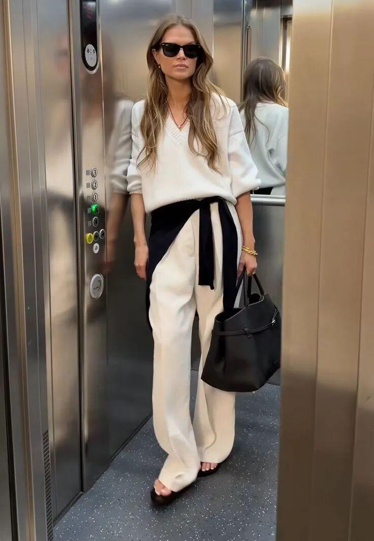 它们让针织看起来更轻,整个人显得明亮而从容。搭配深色下装时稳重,配浅色时干净,属于几乎不出错的颜色。