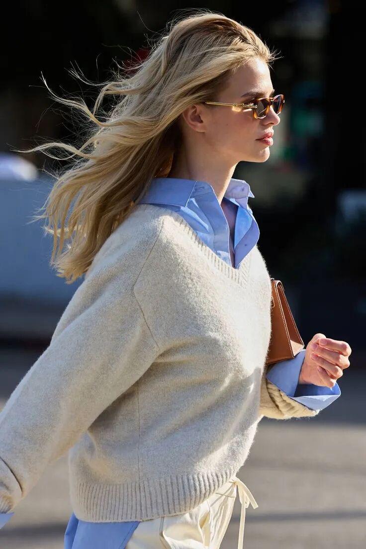 对于那些喜欢简约衣着的人来说,V领是最不需要解释的选择。单穿时,显得柔和而稳。叠穿衬衫时,又添几分干净的知性。