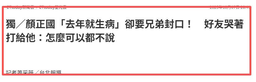 据了解,在2024年的时候,颜国正的健康情况就很糟糕,他当时让朋友为他保密,不要向外界透露。