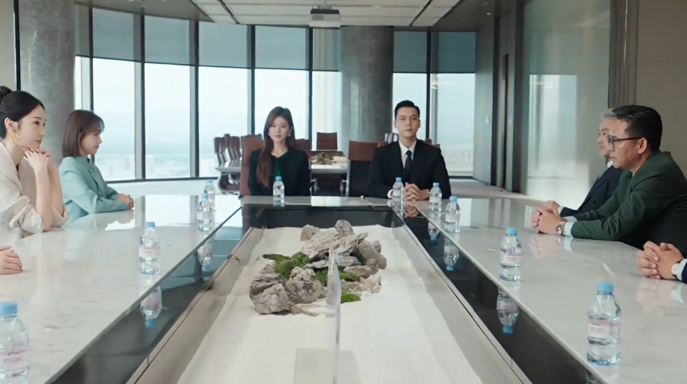 同样一间会议室,同样的男女主,在剧情前后有着不同的心境。