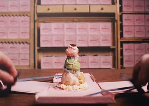 说起食欲,《布达佩斯大饭店》里的蛋糕也是粉绿配。▼