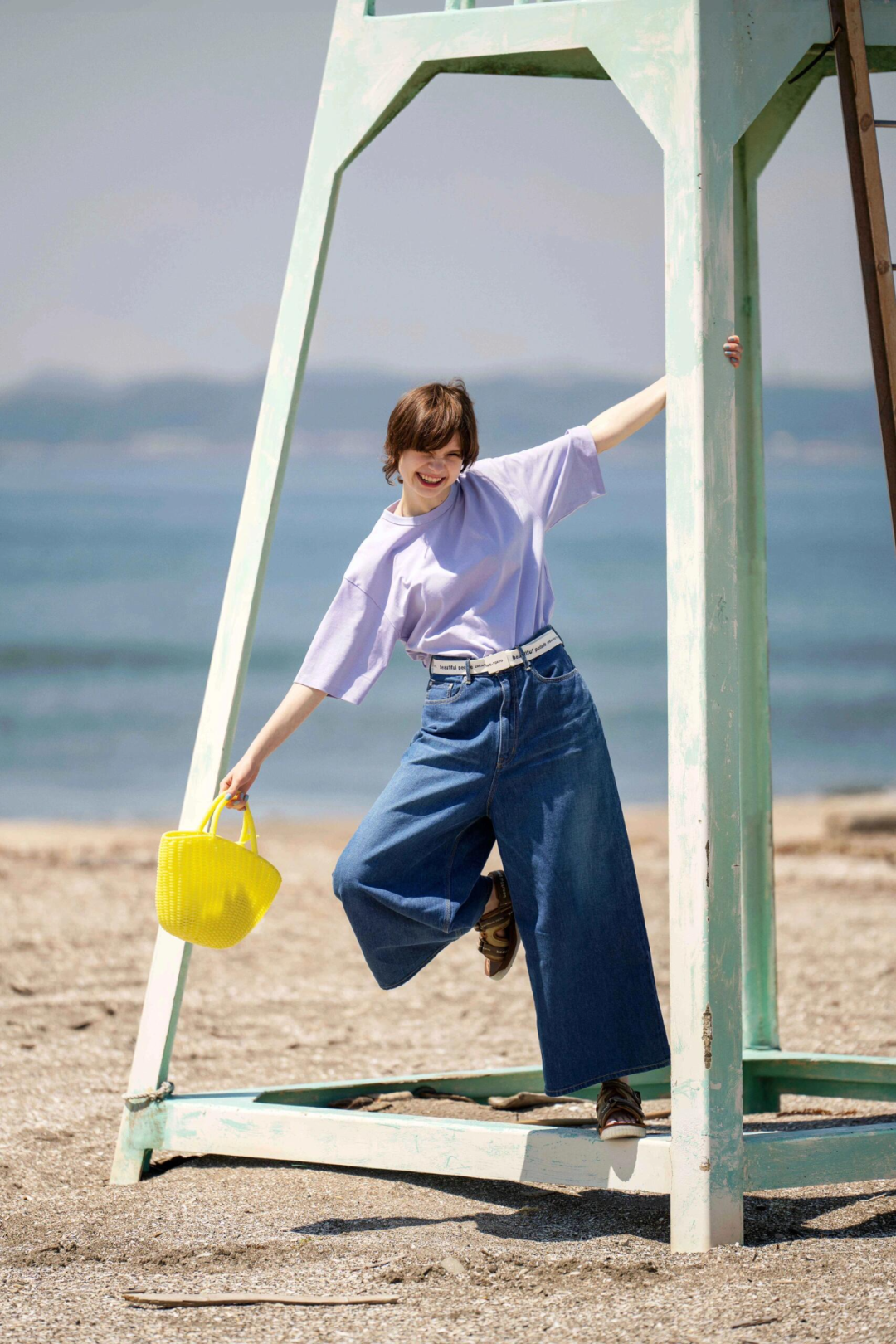 春夏可以试试加入白色或者牛仔蓝作为过渡色,比如一件T恤或者一条牛仔裤就能轻松搞定紫黄配色。▼