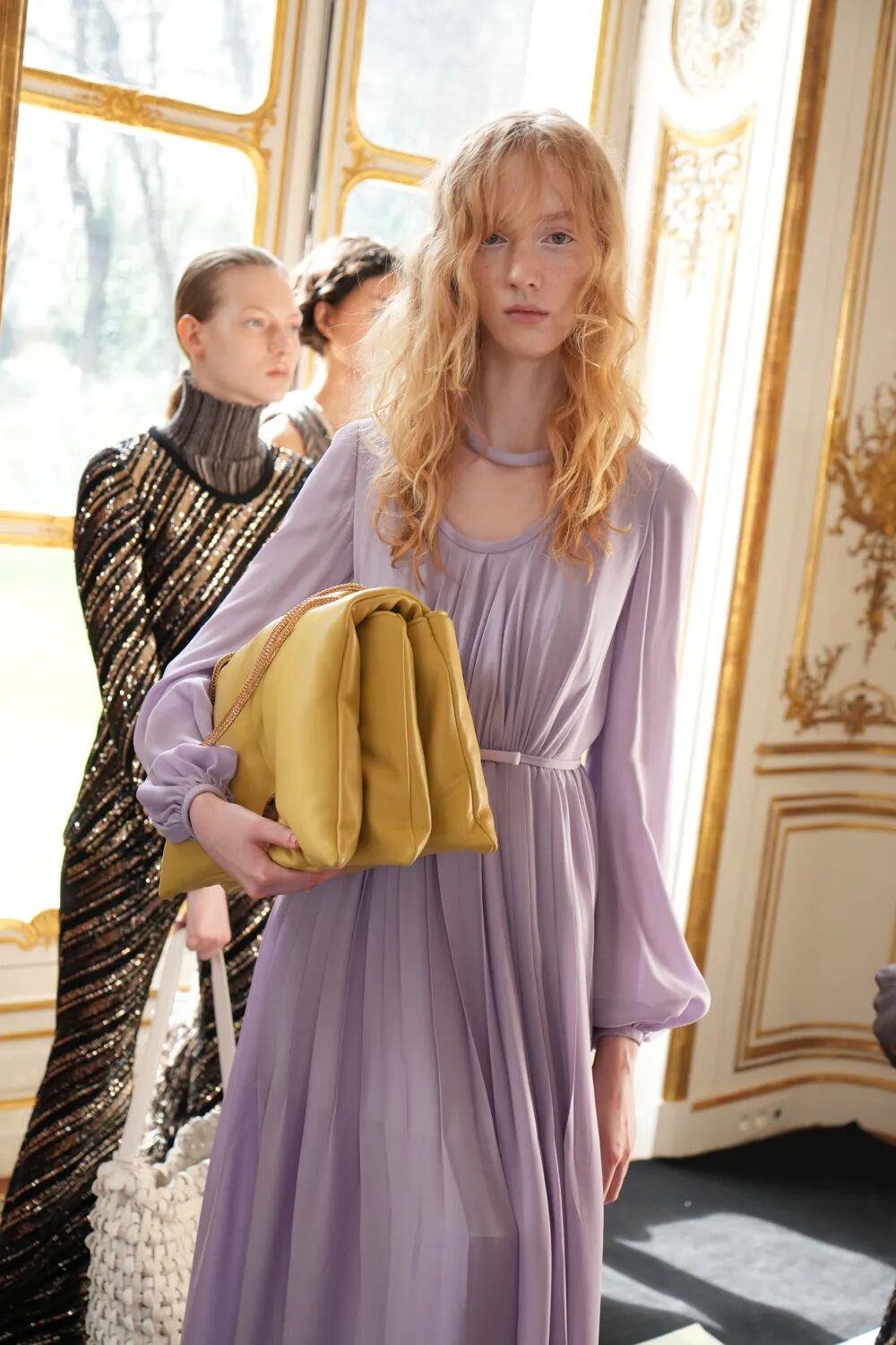而紫色+黄色的配色趋势,从2025秋冬大秀上就初露端倪。 25/26秋冬Giambattista Valli ▼