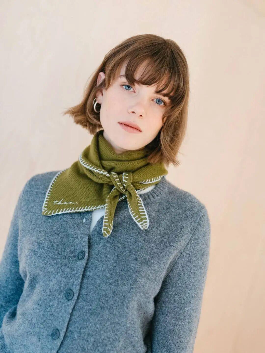 南方地区的朋友可能不太用得上厚厚的围巾,可以试试用三角小领巾,增加搭配层次。▼