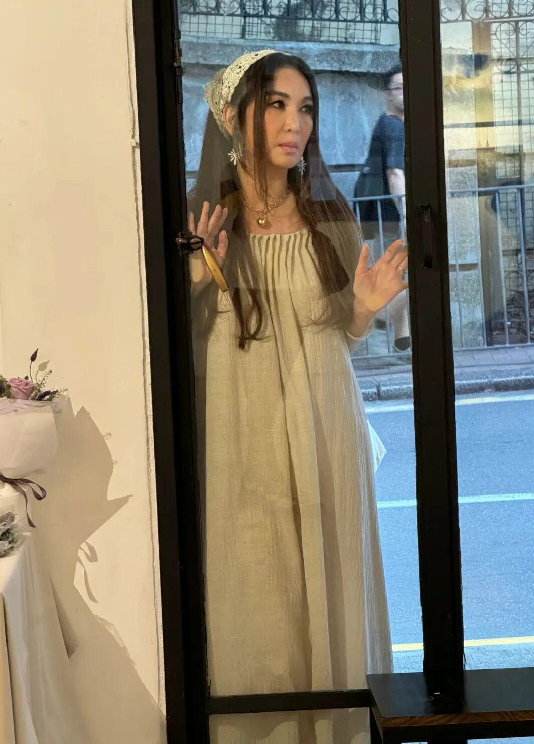 她根本不需要什么高深莫测的心机穿搭,只要她肯暂时放下对喇叭裤的执念,随手抓几件女明星人手一件的基础款——比如一件宽松衬衫、一件微廓形西装,哪怕啥也不做,只是换条宽松点的阔腿裤都和谐。