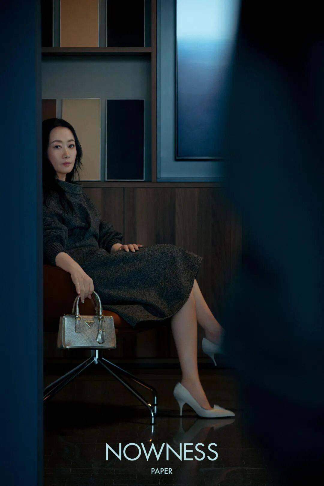 赵涛不爱说话。拍摄照片的间隙,众人散开休息时,她不会拉人聊天,只是安静地扶着栏杆站着,眼神定在某处。在采访中,她的回答也干净利落,微笑着看对面的人。