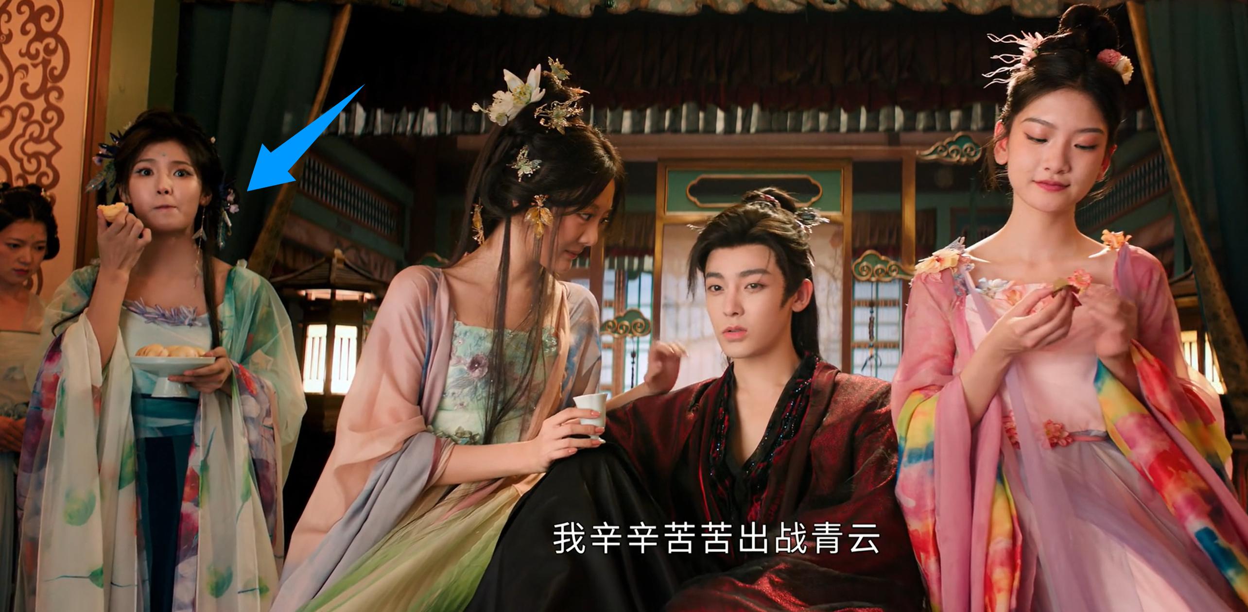 每次有镜头给到若宁,她都是在吃,吃完苹果吃葡萄,傻白甜仙子无疑。